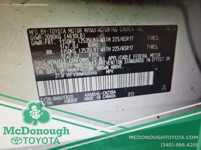 - VIN : 2T3F1RFV9RW468946